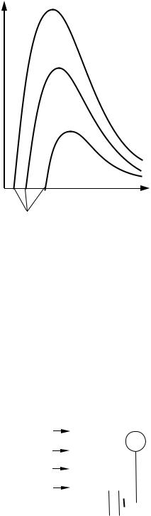 4 Формули Релея-Джинса (70.9), (70.10) для теплового випромінювання задовільно узгоджуються з експериментальними даними лише при великих довжинах хвиль і різко розходяться з дослідом для малих довжин хвиль (див. рис. 70.1, на якому суцільною лінією зображена експериментальна крива, штриховою – крива, побудована за формулою РелеяДжинса).