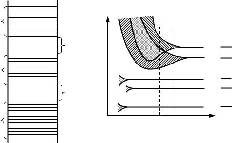 1 Виявляється, що в кристалі спектр можливих значень енергії електронів розпадається на ряд дозволених і заборонених зон (рис. 98.1). У межах дозволених зон енергія змінюється квазінеперервно. Значення енергії, що належать забороненим зонам, не можуть реалізуватися. Це пов'язане з тим, що на електрони в кристалі діє періодичне поле кристалічної решітки.