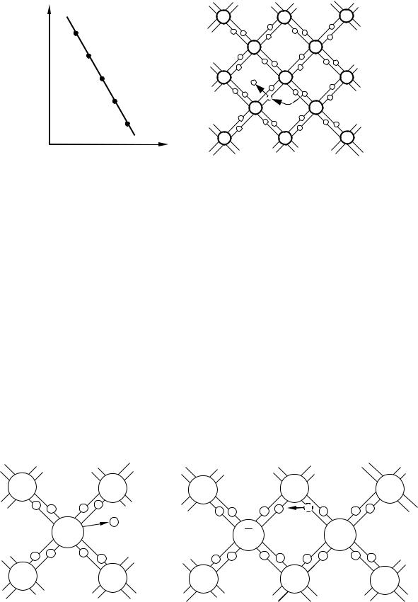 Якщо на графіку відкладати залежність ln σ від 1/T , то для власних напівпровідників отримуємо пряму лінію, яка зображена на рис. 99.3. За нахилом цієї прямої можна визначити ширину забороненої зони ε .