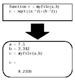 Функции представляют собой М-файлы, которые принимают входные аргументы и выдают выходные. Они работают над переменными в своем собственном рабочем пространстве, которое не совпадает с основным рабочим пространством, доступном из командной строки