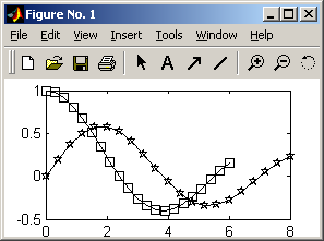 По умолчанию выбирается непрерывная линия с точечным маркером и чередованием цветов с желтого по синий. Маркер может определяться символами: . + * °, а также s (квадрат), d (ромб), р (пятиугольник), h (шестиугольник), v ^ < > (стрелки).