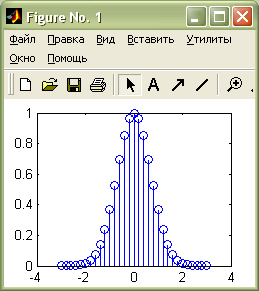 Дискретный график stem(y), stem(x, y), stem(...,'fill'), stem(..., LineSpec), h=stem(...) аналогичен столбцовой диаграмме и выводит значения в виде отрезков с маркером ('fill' – закраска маркера), что представлено на рис. 4.20.