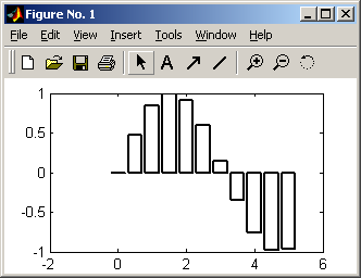 »x = 0 : 0.5 : 5; »y = sin(x); »bar(x, y) |