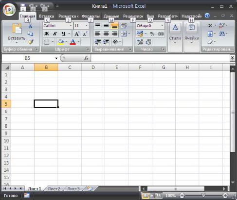 Рис.1.1. Интерфейс стандартной рабочей книги с листами