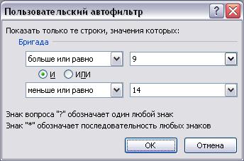 В диалоговом окне Пользовательский автофильтр следует создать два условия, соединенные логическим И. Например, если нам нужно выбрать работников с фамилиями начинающимися на С и Т, нужно установить фильтр по столбцу ФИО, задав в диалоговом окне два условия: