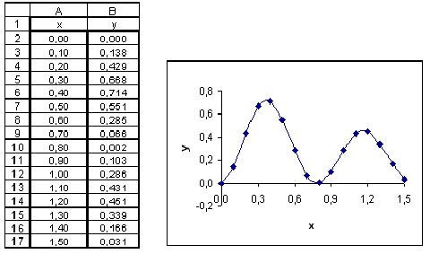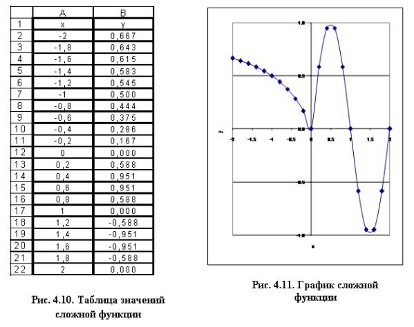 Рис.4.8. Таблица значений функции и её график