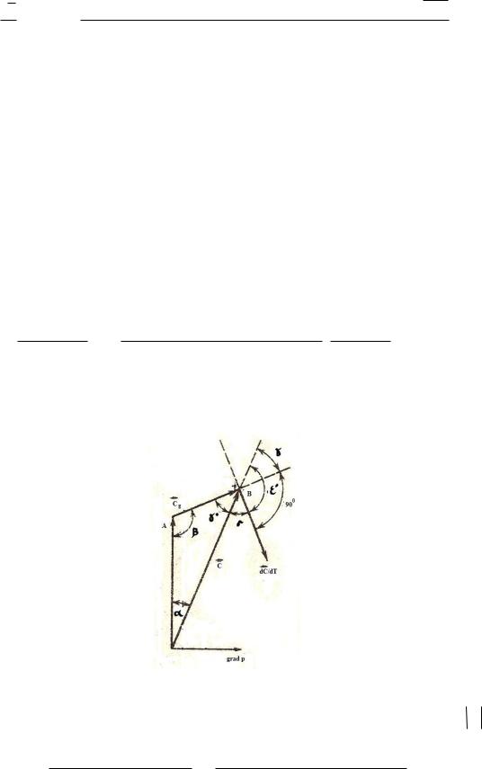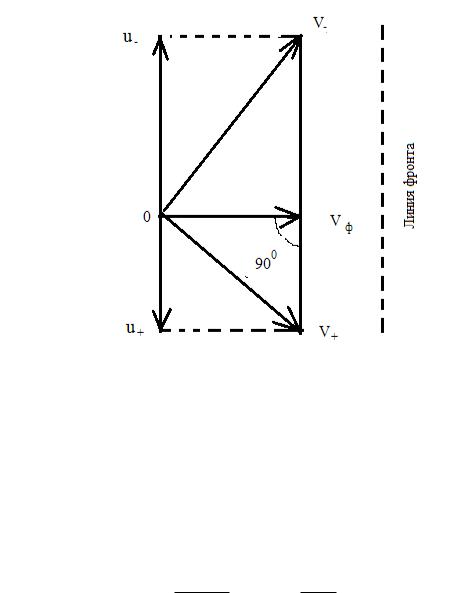 Для определения наклона поверхности раздела к плоскости горизонта находим проекции векторов скорости ветра на ось ox (т.е. на линию фронта) и их разность: