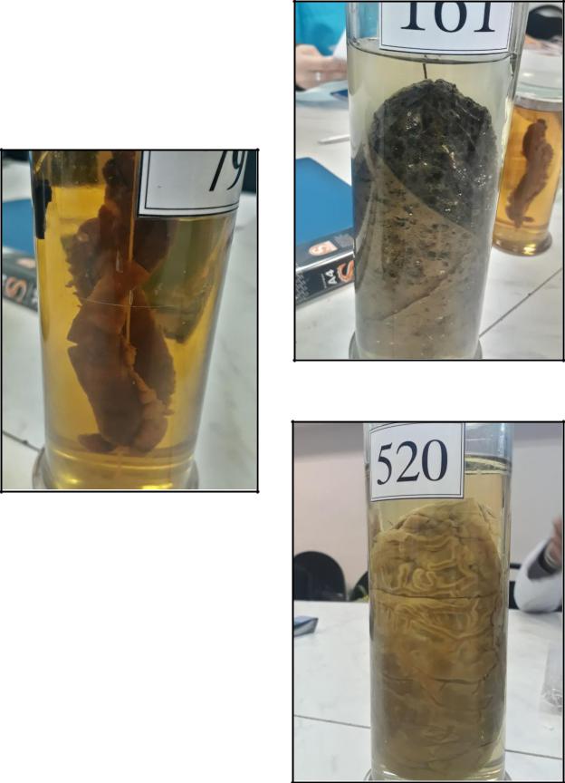 В мягкой мозговой оболочке головного мозга видны единичные серые узелки величиной с просяное зерно. Кровеносные сосуды мягкой мозговой оболочки полнокровные.