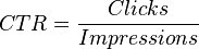 The click-through rate is the number of times a click is made on the advertisement divided by the total impressions: