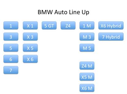 3 series, 7 series, 1 series, 5 series, 6 series, X1, X3, X5, X6 and Z4, out of these models the best in running is the BMW 3 series; the car has collected the greatest chunk of revenue for BMW over the years. But the thing to consider while keeping these models in mind is the product life cycle. It shows the sales of the product through their useful life during different stages of their lifecycle. The stages include Introduction, Growth, Maturity and Decline.considering the product life cycle against the portfolio of cars that BMW has to offer then it can be said that most of the BMW cars are on the maturity stage, even though the BMW 3 Series has high market share but the market which it belongs to does not show signs of growing as previously mentioned in the analysis of the BCG matrix. BMW has realized this and has launched the new version the BMW 3 Series in 2011.