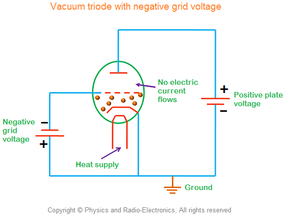 Якщо негативної напруги на керуючу сітку, не змінюючи позитивне напруга пластини, електричний струм не протікає у вакуумній тріода, так як елемент управління сітки виступає або відштовхує вільні електрони, які намагаються рухатися в напрямку анода.