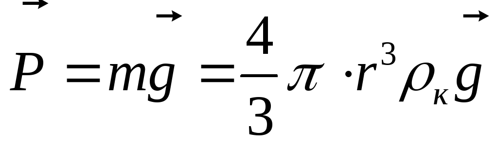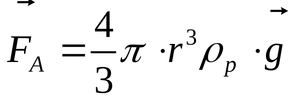 де r – радіус кульки, к = 7800 кг/м3 – густина кульки, g – прискорення вільного падіння. Виштовхуюча сила Архімеда