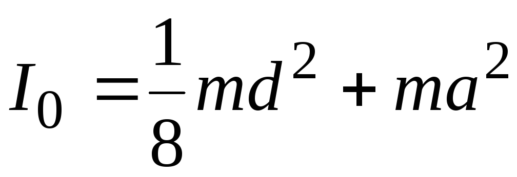 де I0 – момент iнерцiї циліндру відносно осi 1 (рисунок 16.2а); I - момент iнерцiї циліндру відносно осi 2 (рисунок 16.2б); m - маса циліндра; a - відстань між осями (рисунок 16.2б).
