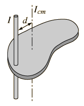 The moment of inertia Icm of any object about an axis through its center of mass is the minimum moment of inertia for an axis in that direction in space. The moment of inertia I about any axis parallel to that axis through the center of mass is given by