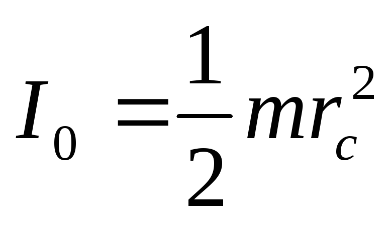 where: I1 – moment of inertia of the system, which consists of disk and two cylinders, placed on identical distances a from the axis of rotation (fig.17. 2б), ID – moment of inertia of empty disk (fig. 17.2в). The moment of inertia of cylinder I0 is determined by the formula: