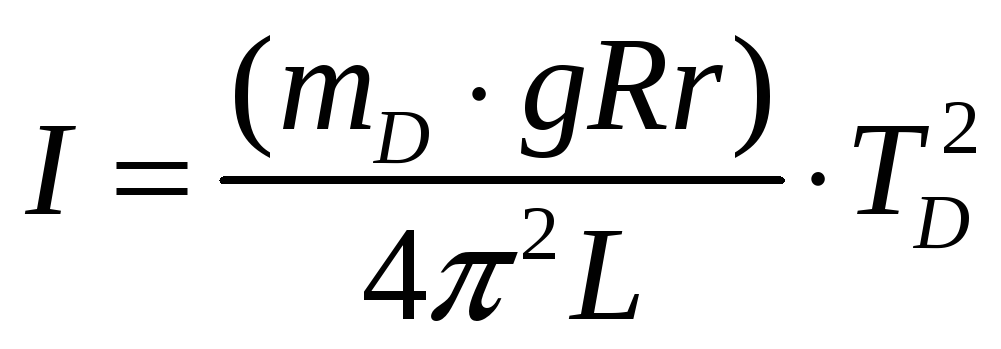 where: mD – mass of lower disk, g - acceleration of the free falling, R - distance from the center of disk to the points in which threads are fastened to it, r - radius of lower disk, L – length of threads of suspension, Т – period of oscillations