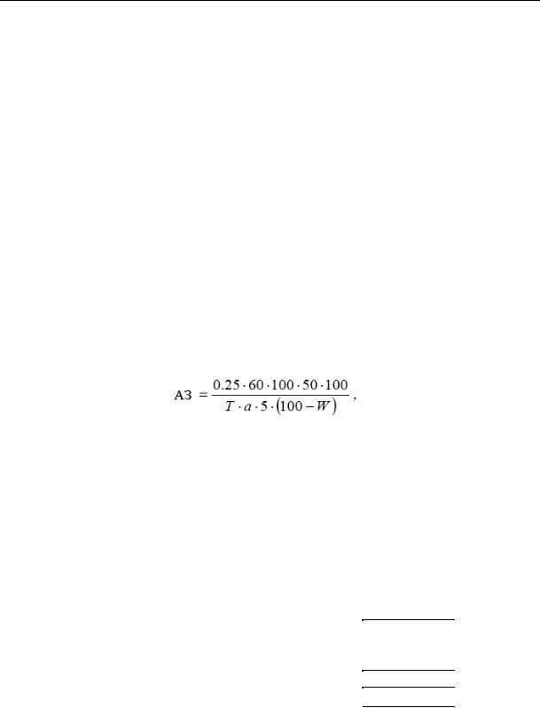 де 0,25 – кількість крохмалю, яка знаходиться в 25 мл розчину; 60 – перерахунок хвилин в години; T – час гідролізу, хв., а- кількість ферментного розчину, що взято на аналіз, мл; 100 – кількість екстрагуючої води, мл; 5 – маса культури, що взята на екстракцію, г; 50 – об'єм реакційної суміші; W – вологість культури грибу, %.