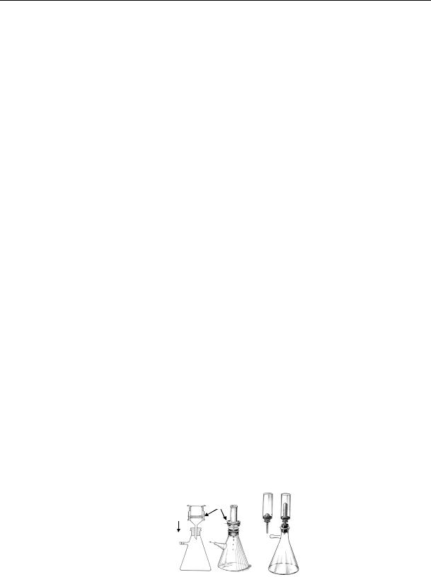 Рис. 7. Фільтри Зейтца із скляним (а) і металевим (б) тримачем та керамічний фільтр (в), з’єднані з колбою Бунзена: