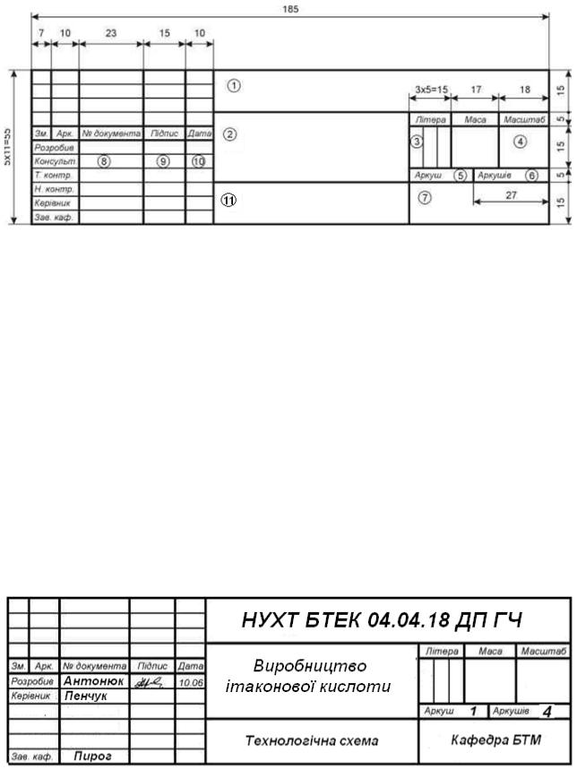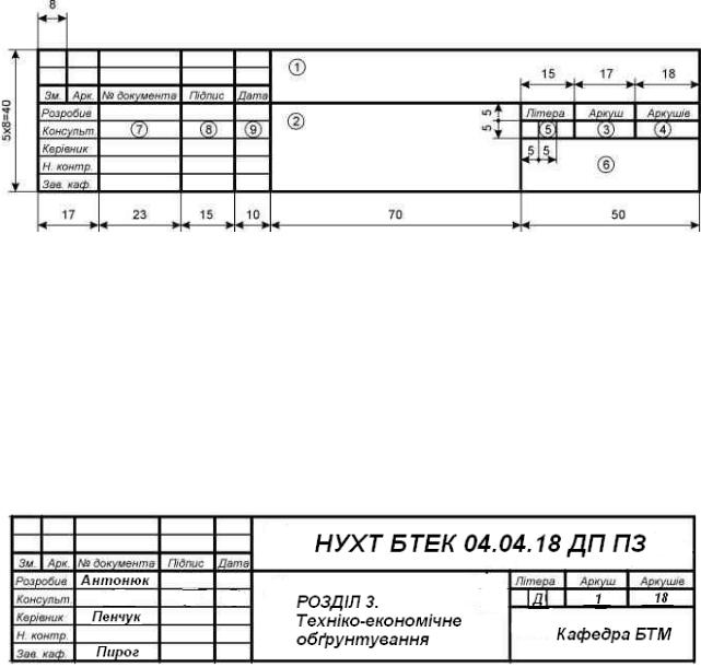 Вграфі 3 – проставляється літера (у робочій конструкторській документації припустимо проставляти літеру тільки на специфікаціях та технічних умовах).