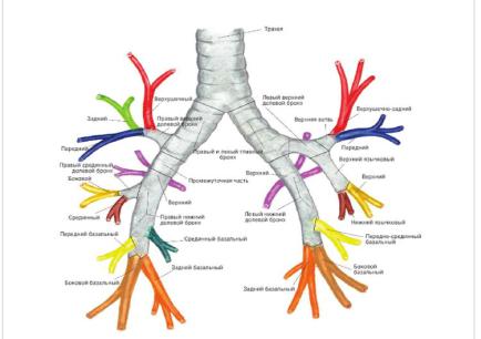 В нижней доле различают 5 или 6 сегментов: