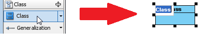 Для создания класса необходимо щелкнуть на элементе «Class», который находится на панели инструментов диаграммы. После этого щелкнуть по пустому месту на полотне построения диаграммы.