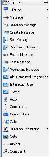 Однако есть возможность скрыть эту панель и пользоваться панелью инструментов, которая находится слева от полотна, на котором изображается диаграмма последовательности.