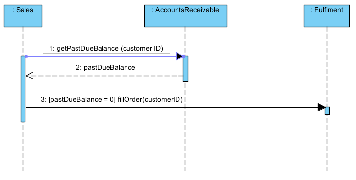 Так называемые возвращаемые сообщения (return message) обозначаются пунктирной линией с не закрашенной стрелкой на конце.