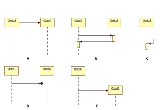 Какие из фрагментов диаграмм последовательностей НЕ противоречат нотации UML?