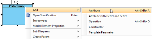 Чтобы создать новый атрибут класса, надо щелкнуть правой кнопкой мыши по классу и в контекстном меню выбрать «Add -> Attribute».