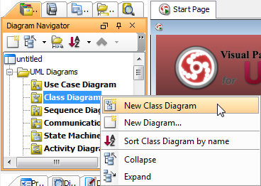 Щелкнуть правой кнопкой мыши по «Class Diagram» в навигаторе диаграмм, и в контекстном меню выбрать «New Class Diagram».