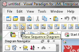 Для создания диаграммы последовательности необходимо выбрать «New Sequence Diagram» в контекстном меню, которая появится при клике правой кнопкой мыши по пункту «Sequence Diagram» в навигаторе диаграмм.