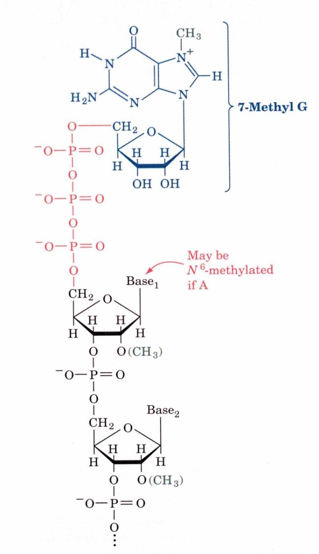 Первый и второй нуклеотидные остатки в мРНК тоже часто метилируются по 2'-О-положению остатка рибозы.