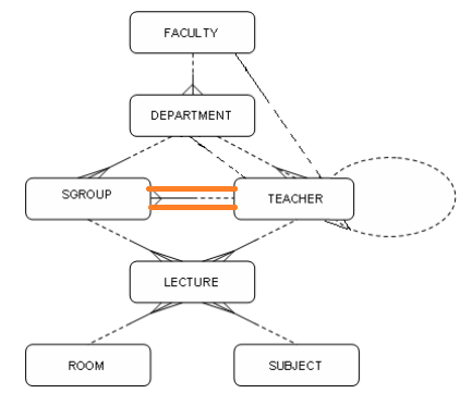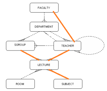 FROM Faculty f, Teacher t, Lecture l, Sgroup g, Subject s