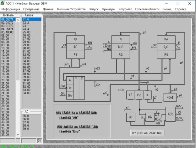 у1 и у6; R и W- управляющие входы; OP - осведомительный выход. Сигналы