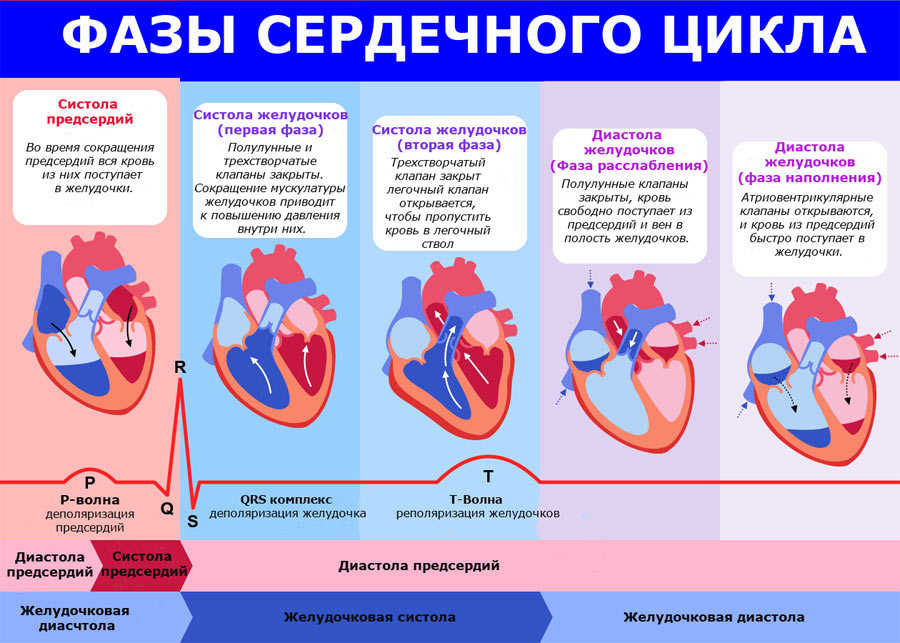 Когда спадает напряжение стенки желудочков, атриовентрикулярные клапаны током крови открываются. Кровь, заполняющая желудочки, постепенно расправляет их.