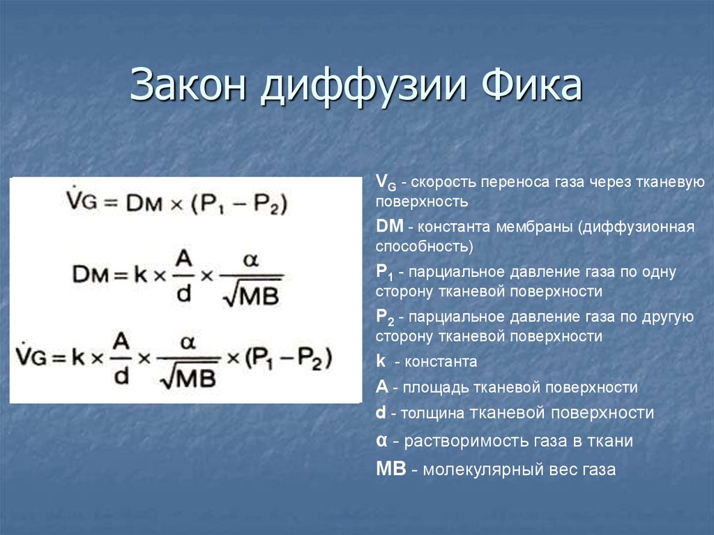 Согласно закону диффузии (закон Фика) скорость диффузии