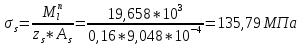 Напряжение в продольной рабочей арматуре в нормальном сечении с трещиной от соответствующей внешней нагрузки: