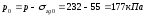 подошвы подушки, кПа;