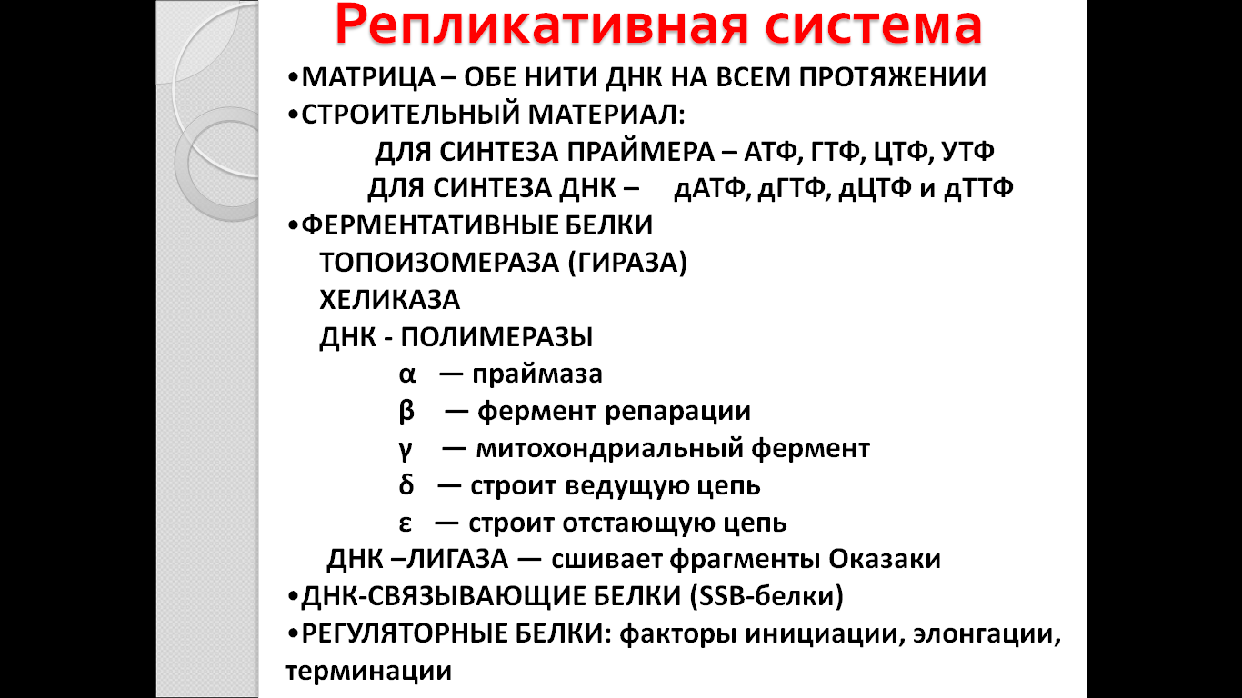 ферменты, белки. Механизм репликации.