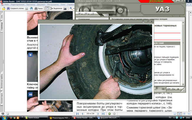 После установки новых колодок, пока фрикционные накладки не приработались, возможен нагрев тормозных барабанов. Если нагрев невелик (рука терпит), дополнительная регулировка не требуется. При сильном нагреве немного свести эксцентриками тормозные колодки колеса.