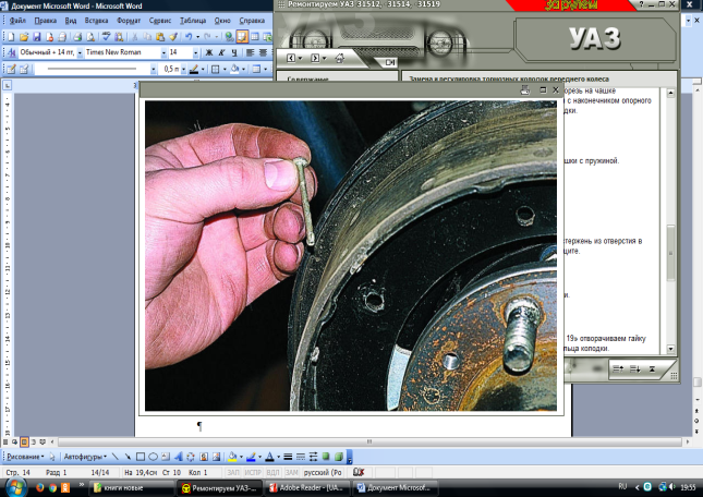 Барабан тормозного механизма – тормозной механизм (наружный диаметр колодок) Щит тормозного механизма в сборе – опорный палец колодок Тормозная колодка в сборе – втулка опорного пальца колодок Втулка опорного пальца колодок – опорный палец колодок |