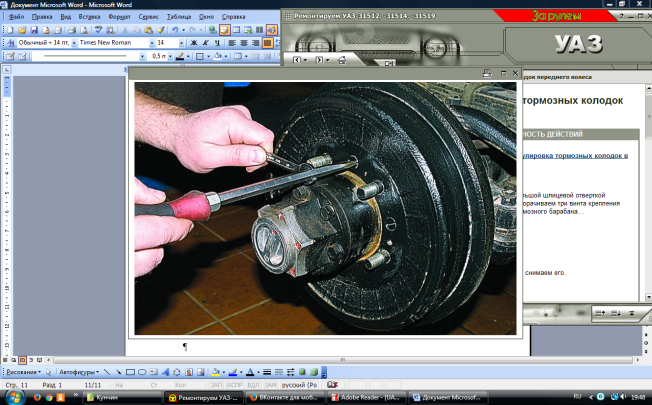 Замена и регулировка тормозных колодок переднего колеса |