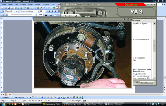 Тормозные барабаны обработаны вместе со ступицами, поэтому после снятия устанавливать их на те же ступицы. Перестановка тормозных барабанов с одной ступицы на другую приведет к увеличению биения рабочих поверхностей барабана относительно тормозных накладок. При установке барабана на место, прежде чем завернуть винты, следует гайками крепления колес плотно прижать тормозной барабан к ступице и только после этого завернуть винты. Это необходимо для более плотного прижатия тормозного барабана к ступице колеса.