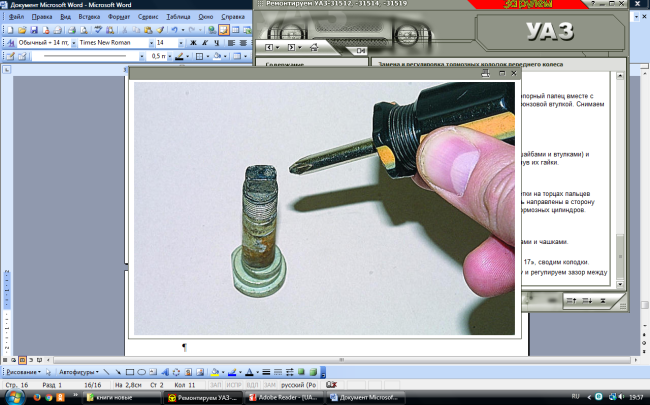 Таблица 1.3 – Технологическая карта на разборку, сборку тормозного механизма автомобиля УАЗ-3151