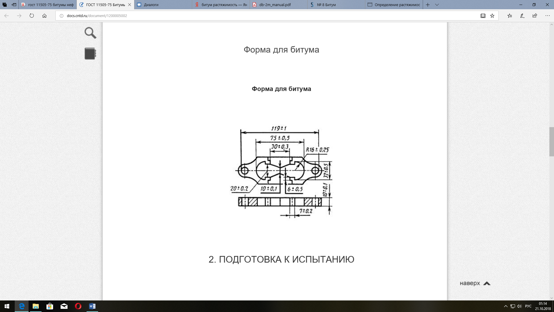Образцы битума закладывают в специальную форму в виде восьмерки, чертеж которой представлен на рисунке 2