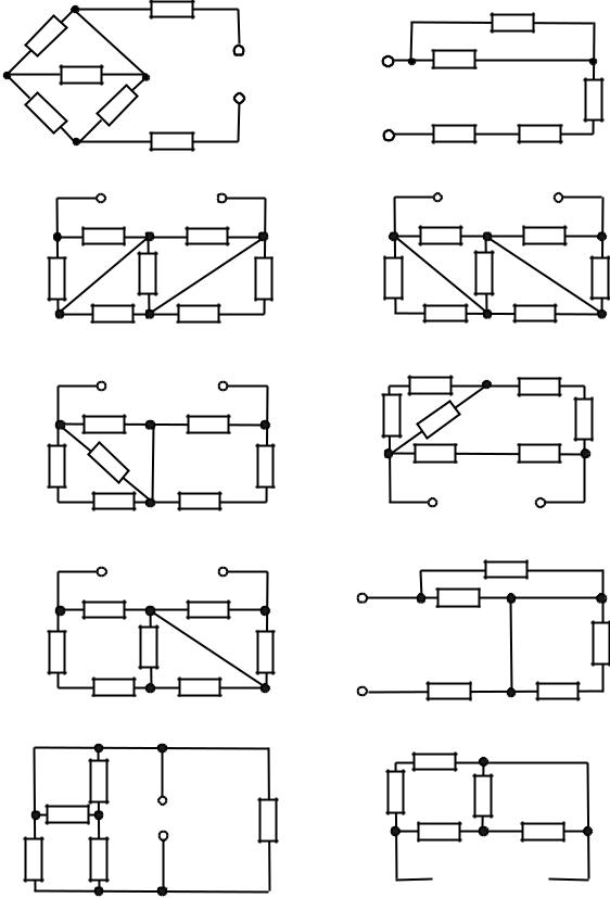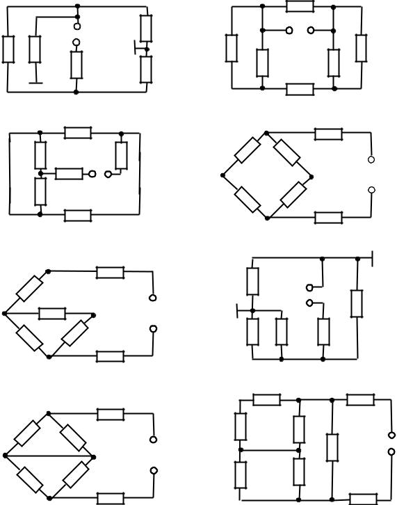 Ус л о в и е з а д а ч и. Определить входное сопротивление цепи (рис. 2.35, схемы 1 – 20). Параметры сопротивлений заданы в омах. Ответ приведен под схемой. Знаком