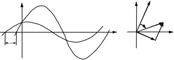2 . В предельных случаях цепь становится чисто активной (L = 0) или чисто реактивной (r = 0). На рис. 3.8, а изображена временная диаграмма для случая r = xL ( 45 ). Ей соответствует векторная диаграмма, представленная нарис. 3.8, б.