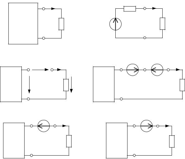 На основании принципа наложения схему рис. П.1.1, г можно разложить на две: рис. П.1.1, д и е. В первой из полученных схем остаются все источники напряжения и тока внутри активного двухполюсника и одна ЭДС, направленная встречно и по величине равная напряжению холостого хода Uх.х. Эта схема эквивалентна схеме рис. П.1.1, в. Следовательно, ток I' в этом случае равен нулю.