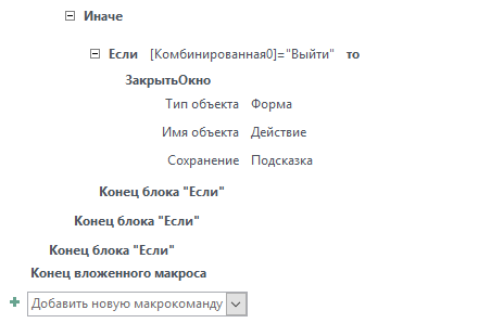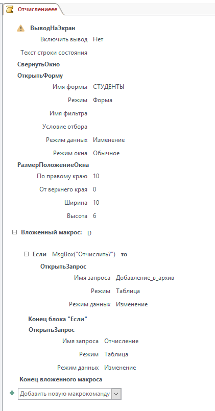 Теперь создаю макрос «Отчислениеее». Из каталога команд добавляем Вложенный макрос и условие Если.