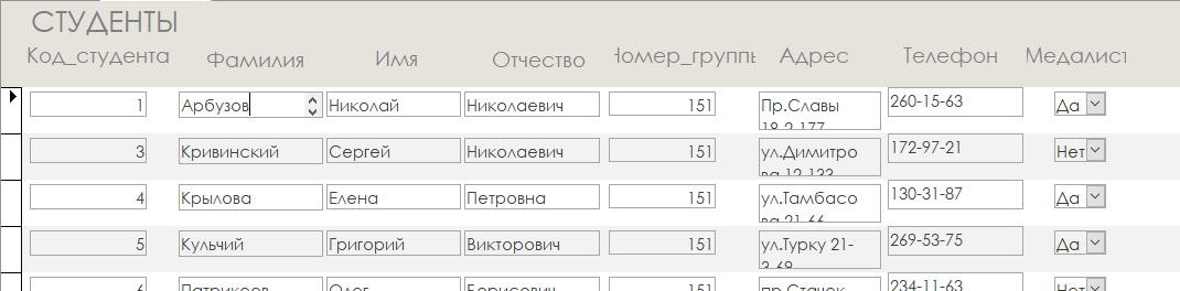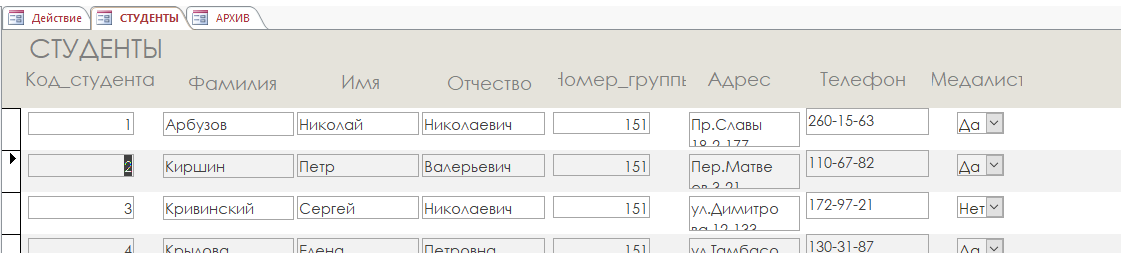 Видим, что студента с Кодом студента «2». Больше нет в списке.